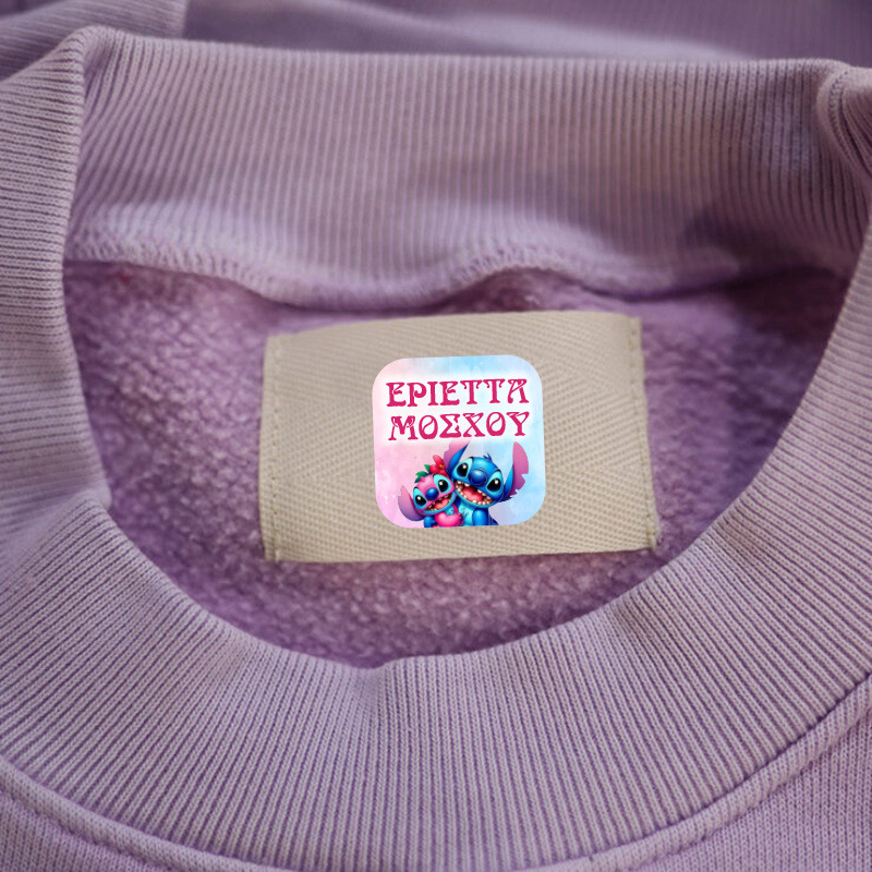 Αδιάβροχες ετικέτες Stitch & Angel με όνομα για Ρούχα