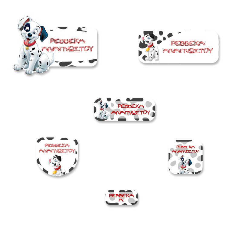 Αδιάβροχες σχολικές ετικέτες 101 Σκυλάκια Δαλματίας με όνομα Premium pack