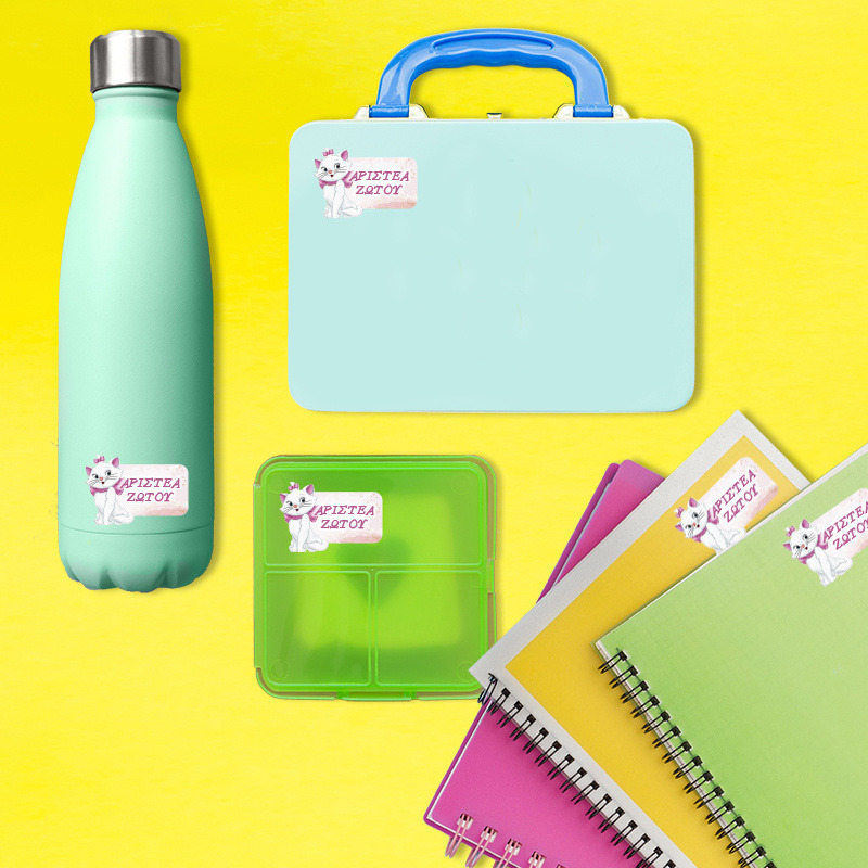 Αδιάβροχες σχολικές ετικέτες Αριστόγατες Μαρί κοπτικές με όνομα