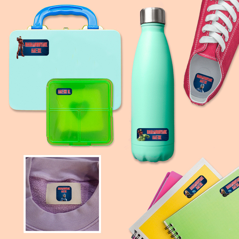 Αδιάβροχες σχολικές ετικέτες Avengers με όνομα Starter Pack