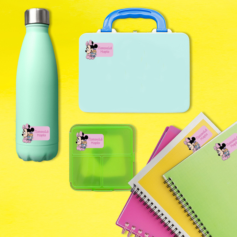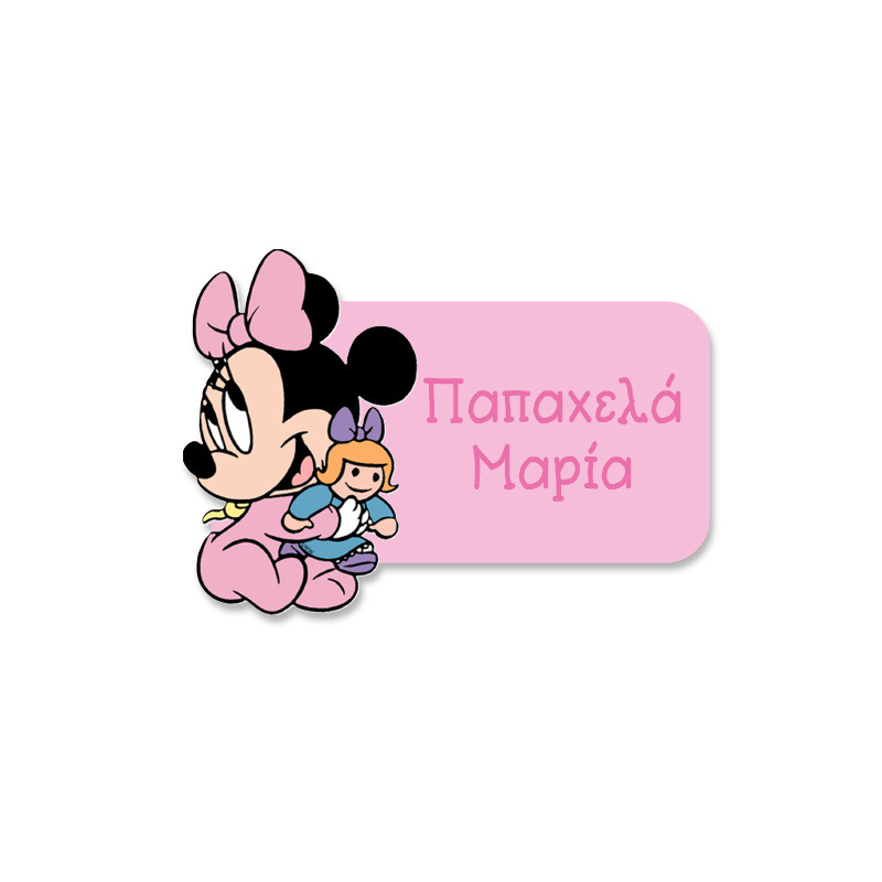 Αδιάβροχες σχολικές ετικέτες Baby Minnie κοπτικές με όνομα