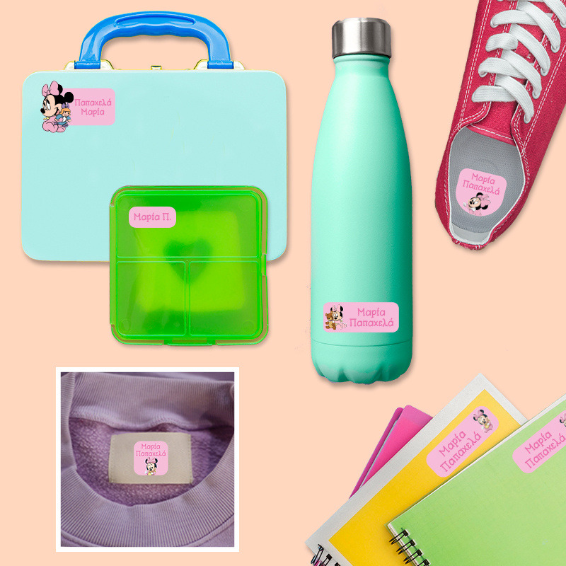 Αδιάβροχες σχολικές ετικέτες Baby Minnie με όνομα Starter Pack