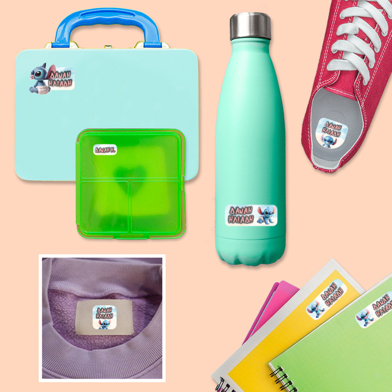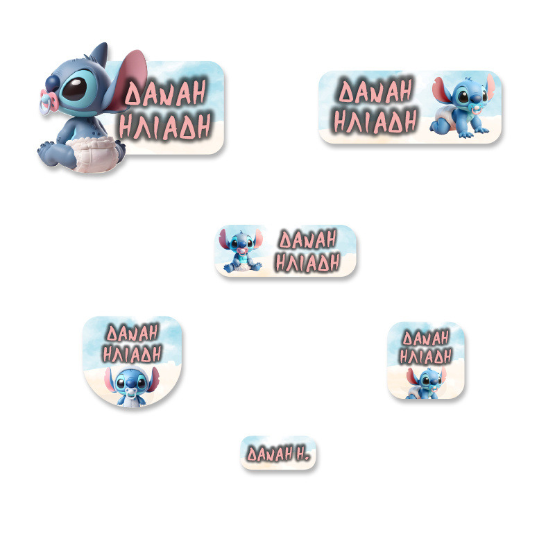 Αδιάβροχες σχολικές ετικέτες Baby Stitch με όνομα Starter Pack