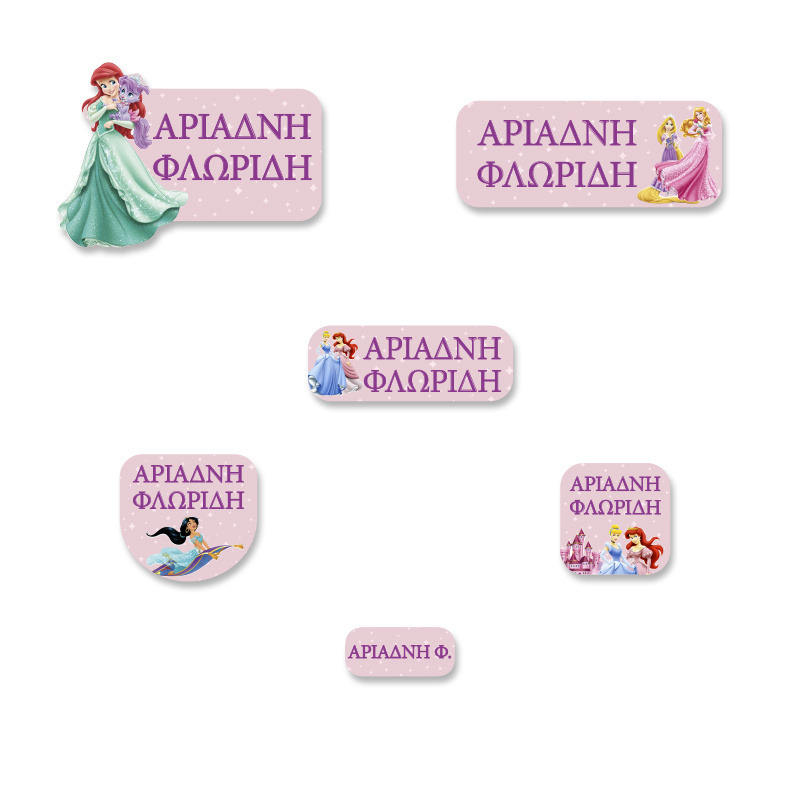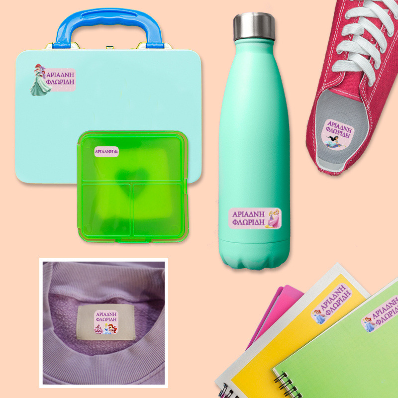 Αδιάβροχες σχολικές ετικέτες Disney Princess με όνομα Starter Pack