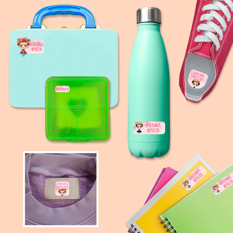 Αδιάβροχες σχολικές ετικέτες Frida Kahlo με όνομα Starter Pack