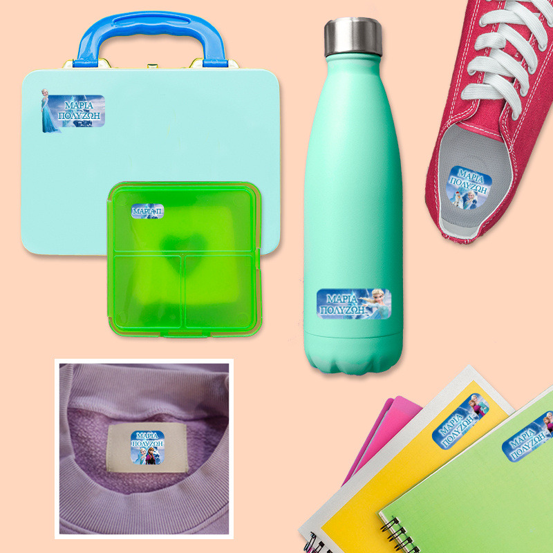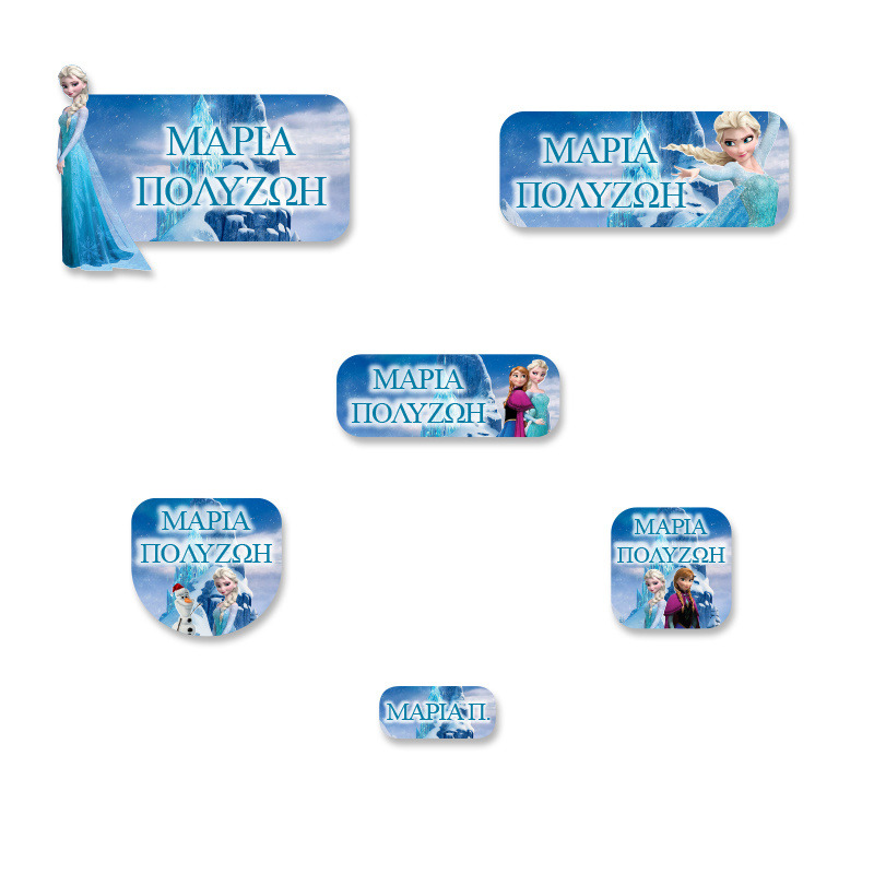 Αδιάβροχες σχολικές ετικέτες Frozen με όνομα Premium pack