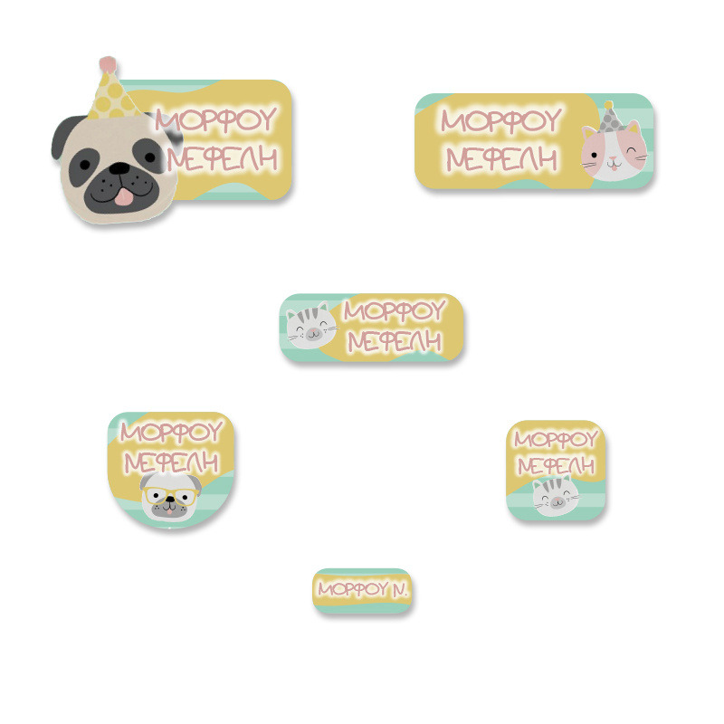 Αδιάβροχες σχολικές ετικέτες Hello Pets με όνομα Premium pack
