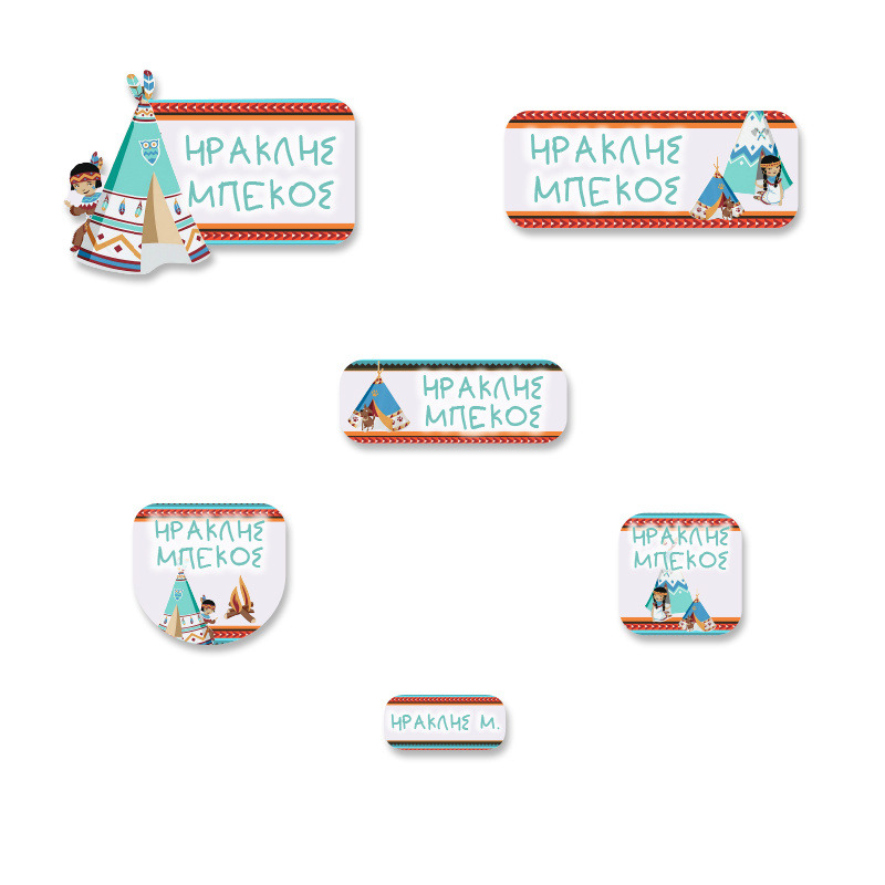 Αδιάβροχες σχολικές ετικέτες Ινδιάνος με όνομα Starter Pack