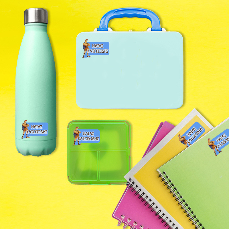 Αδιάβροχες σχολικές ετικέτες Ηρακλής κοπτικές με όνομα