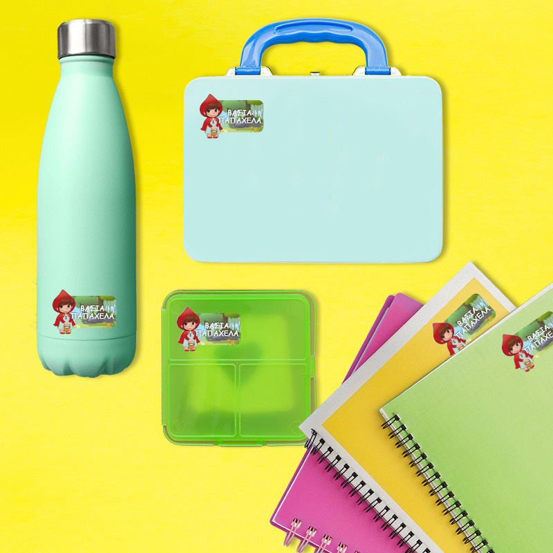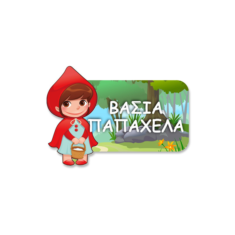 Αδιάβροχες σχολικές ετικέτες Κοκκινοσκουφίτσα κοπτικές με όνομα