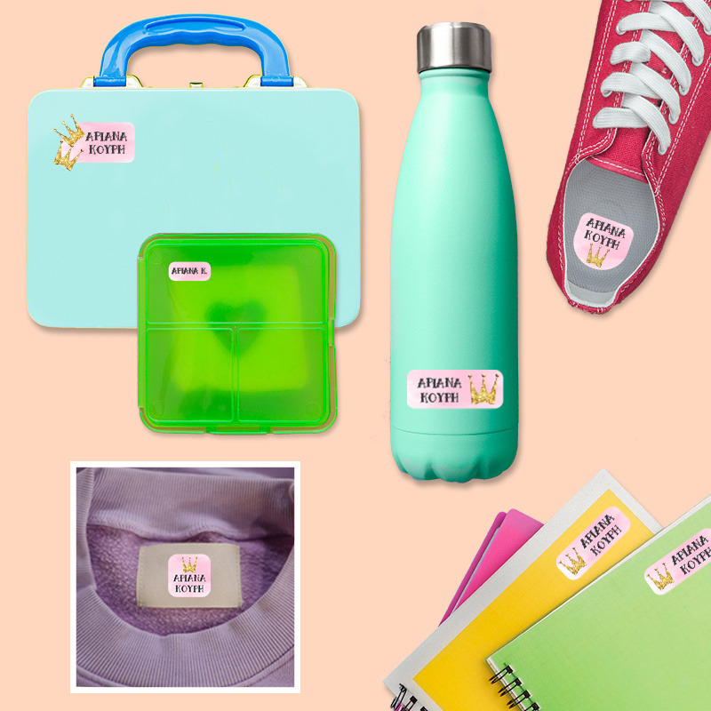 Αδιάβροχες σχολικές ετικέτες Κορώνα με όνομα Starter Pack