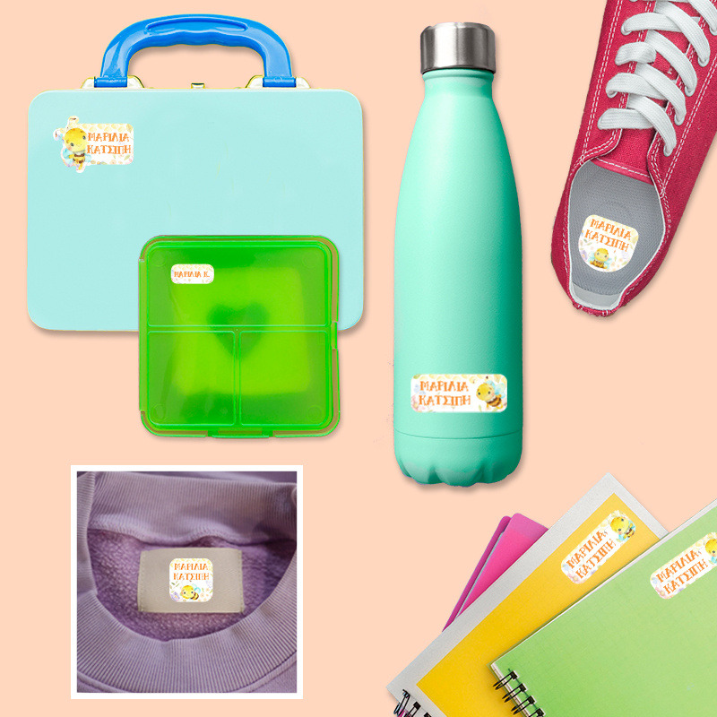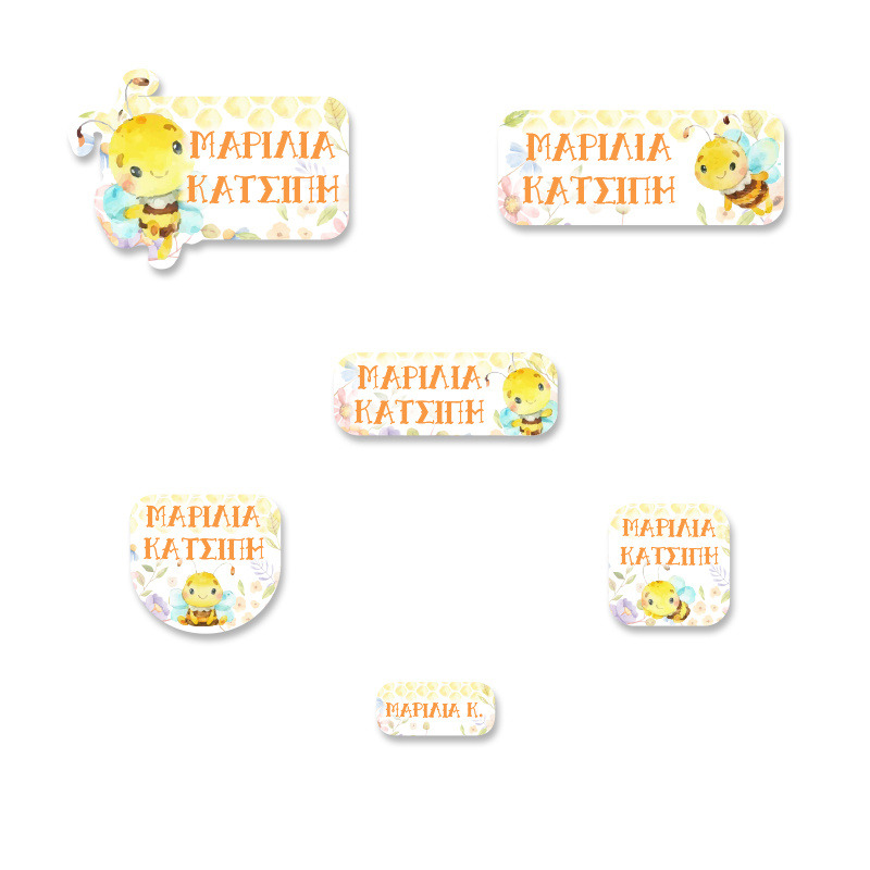 Αδιάβροχες σχολικές ετικέτες Μέλισσα με όνομα Premium pack