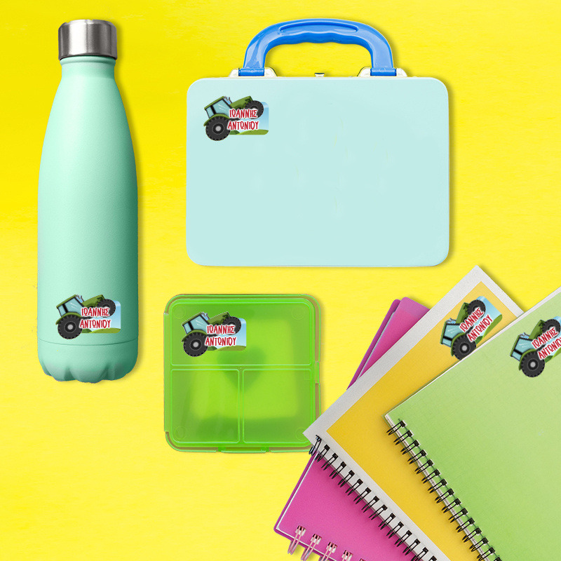 Αδιάβροχες σχολικές ετικέτες Μικρός Τρακτεράκιας κοπτικές με όνομα