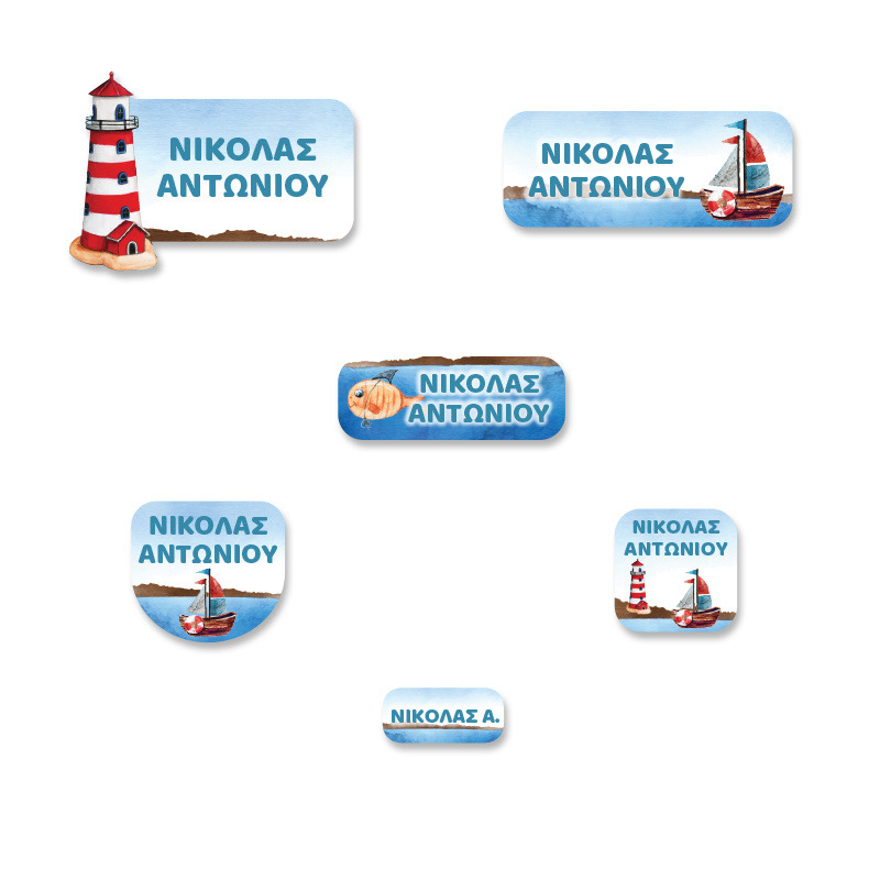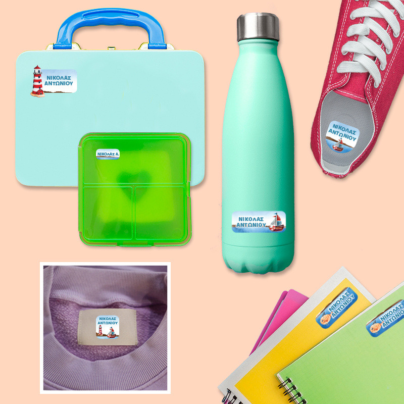 Αδιάβροχες σχολικές ετικέτες Ναυτικό με όνομα Premium pack