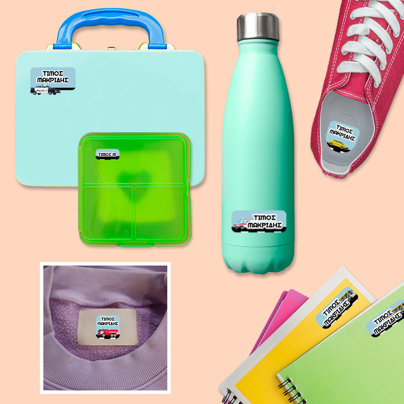 Αδιάβροχες σχολικές ετικέτες On the road με όνομα Starter Pack