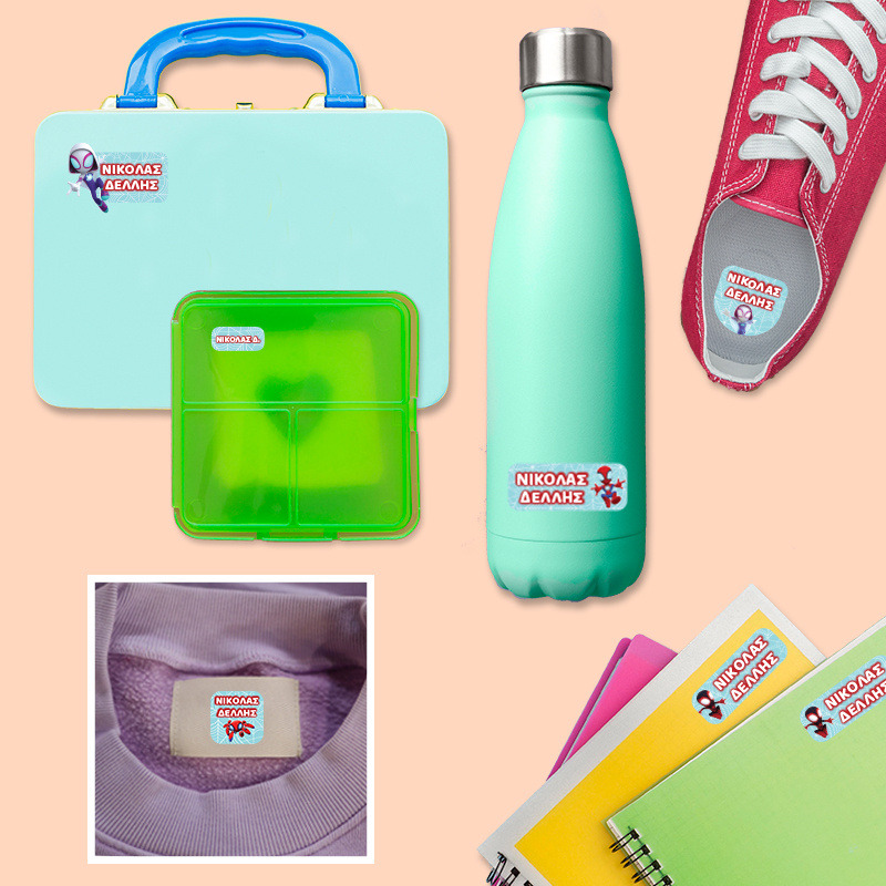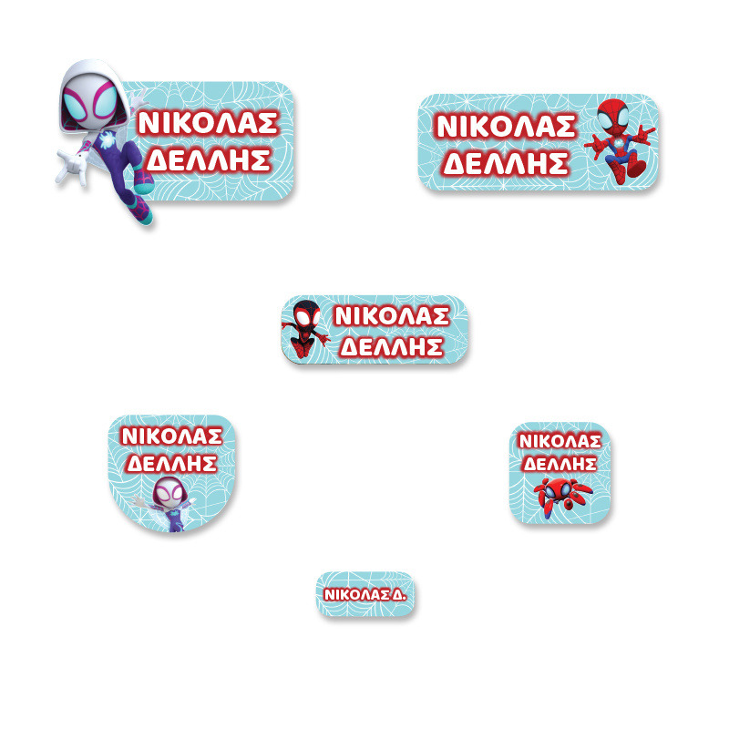 Αδιάβροχες σχολικές ετικέτες Spidey με όνομα Starter Pack