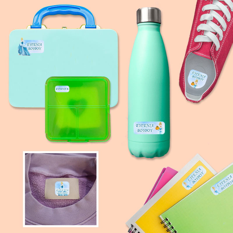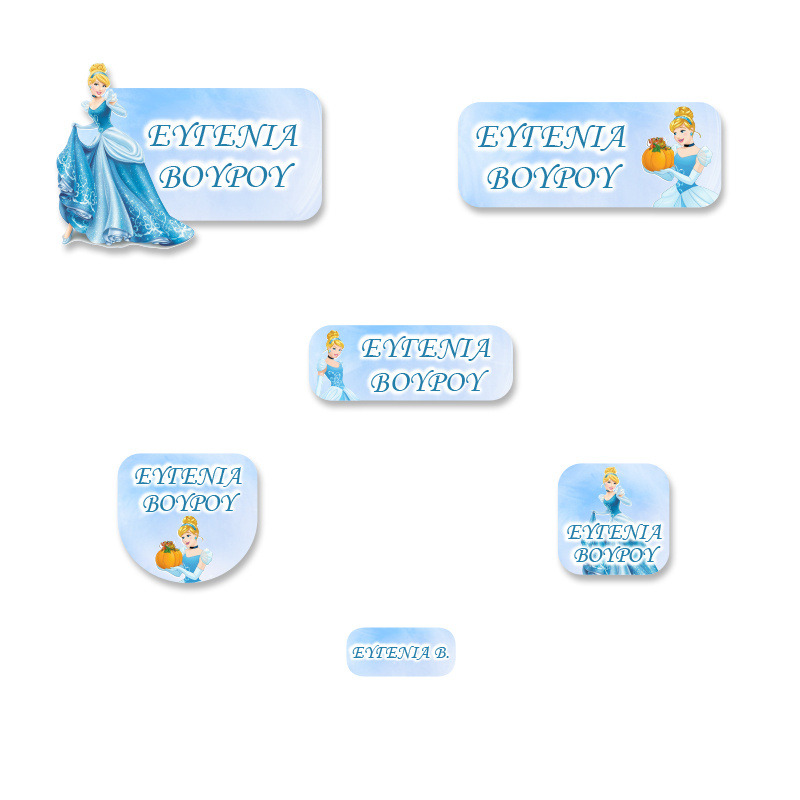 Αδιάβροχες σχολικές ετικέτες Σταχτοπούτα με όνομα Premium pack
