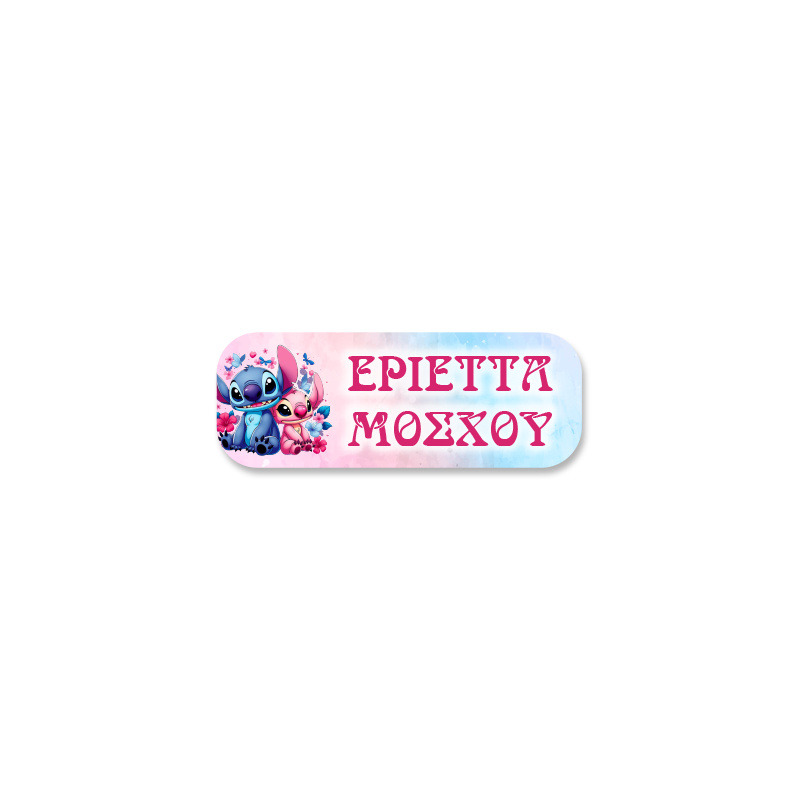 Αδιάβροχες σχολικές ετικέτες Stitch & Angel με όνομα - Standard