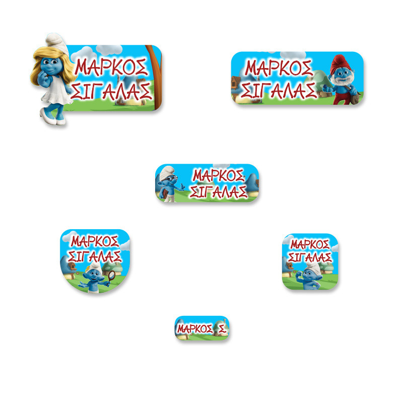 Αδιάβροχες σχολικές ετικέτες Στρουμφάκια με όνομα Premium pack