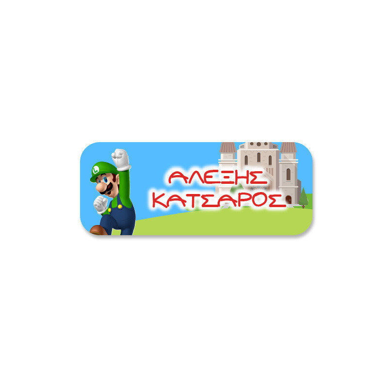 Αδιάβροχες σχολικές ετικέτες Super Mario με όνομα - Maxi