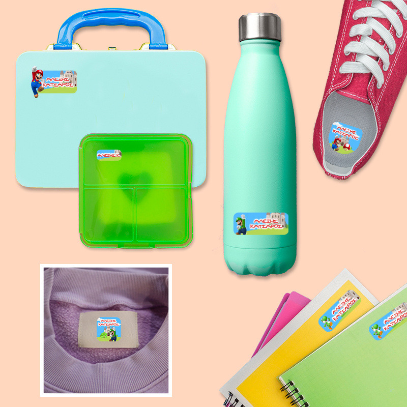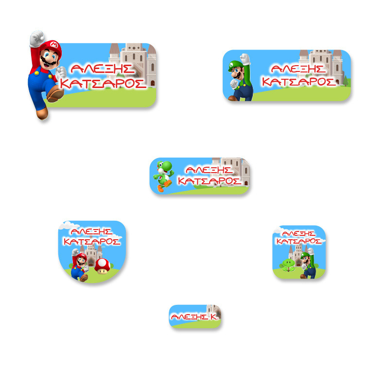 Αδιάβροχες σχολικές ετικέτες Super Mario με όνομα Premium pack