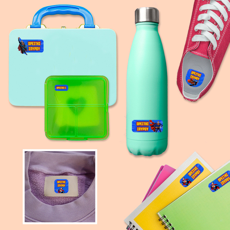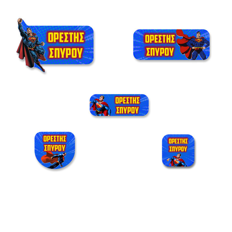Αδιάβροχες σχολικές ετικέτες Superman με όνομα Starter Pack