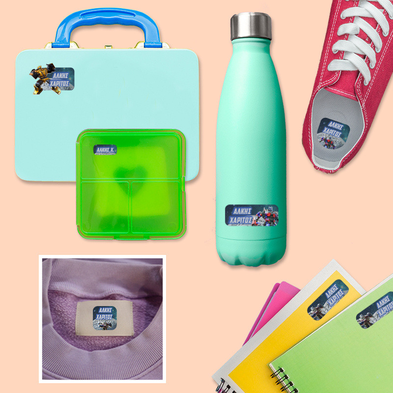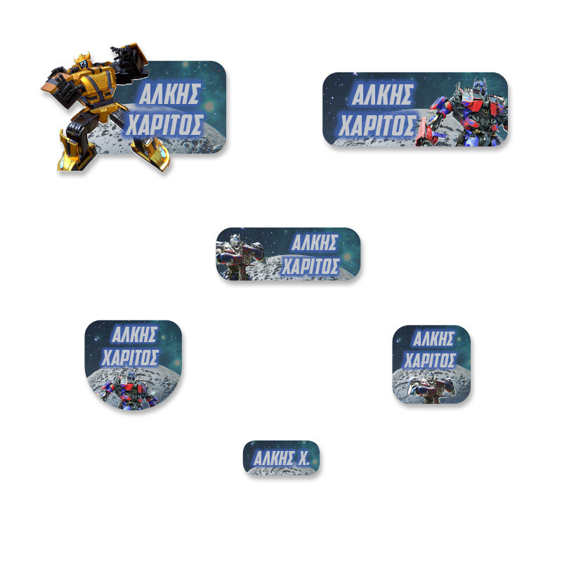 Αδιάβροχες σχολικές ετικέτες Transformers με όνομα Premium pack