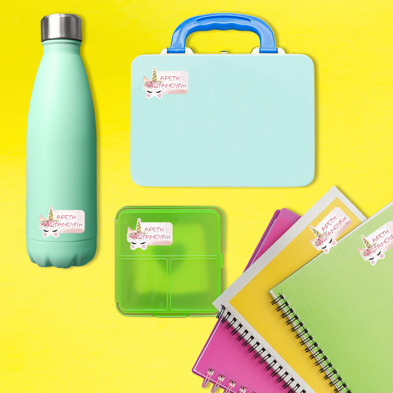 Αδιάβροχες σχολικές ετικέτες Unicorn κοπτικές με όνομα