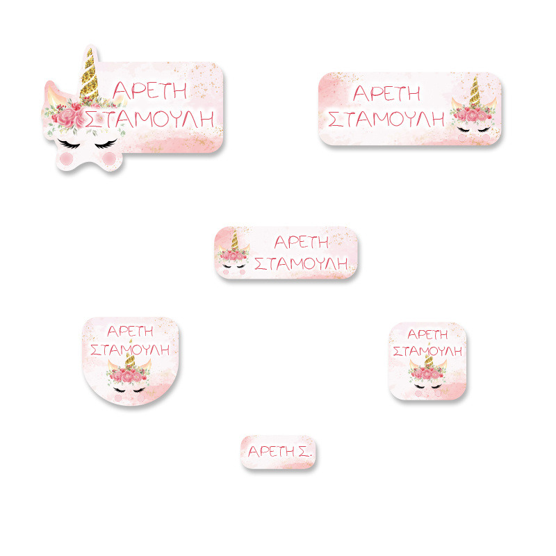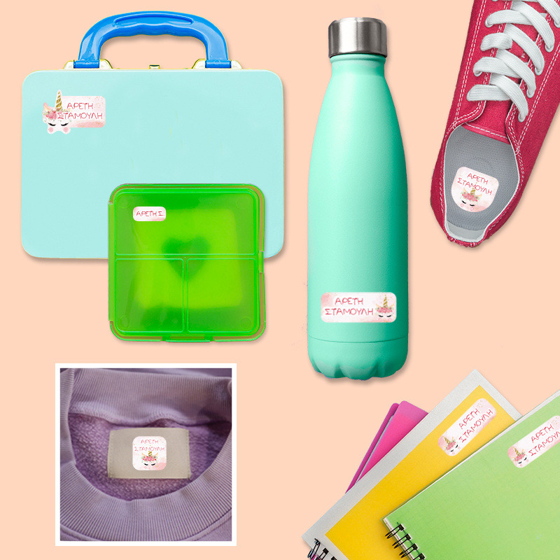 Αδιάβροχες σχολικές ετικέτες Unicorn με όνομα Starter Pack