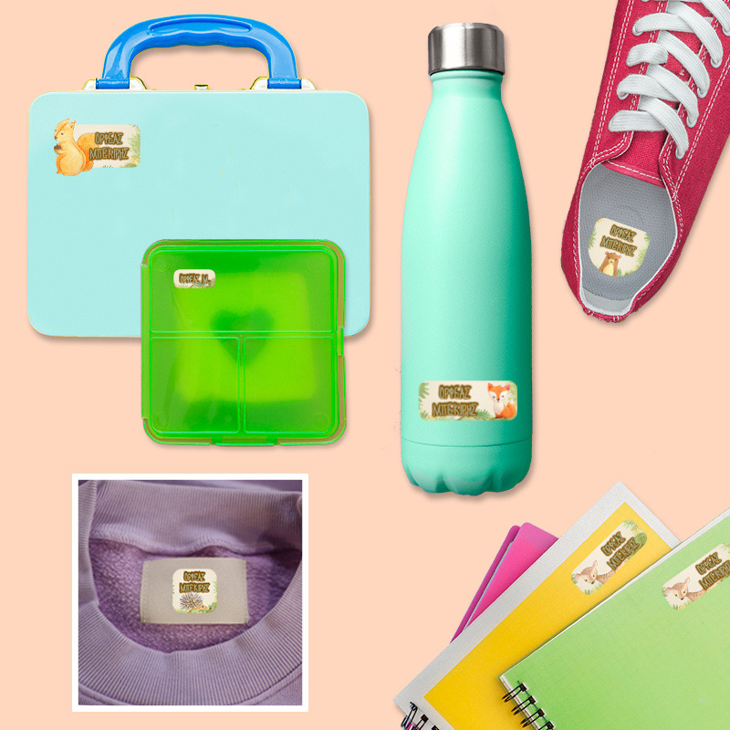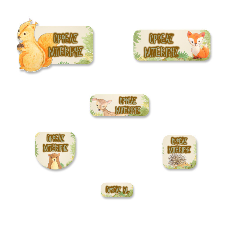Αδιάβροχες σχολικές ετικέτες Ζωάκια Δάσους με όνομα Starter Pack