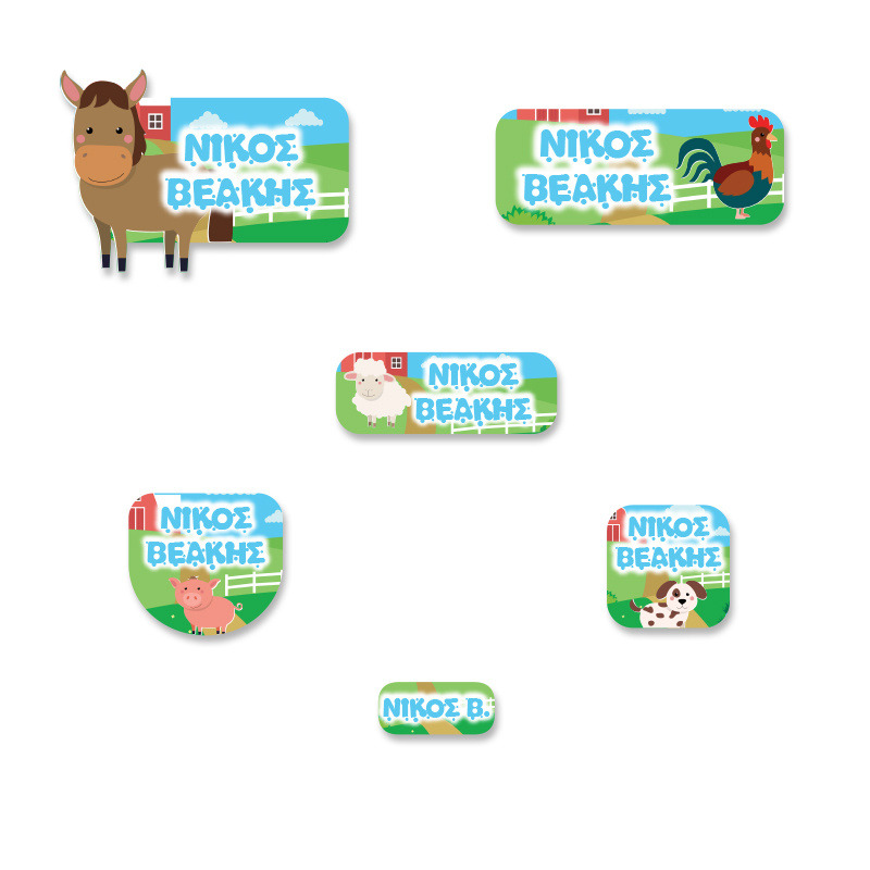 Αδιάβροχες σχολικές ετικέτες Ζωάκια Φάρμας με όνομα Starter Pack