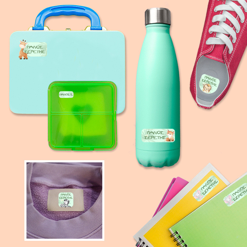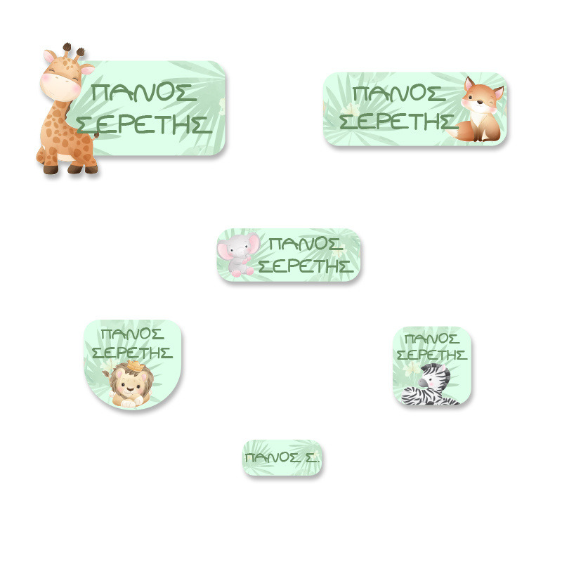Αδιάβροχες σχολικές ετικέτες Ζωάκια Ζούγκλας με όνομα Starter Pack