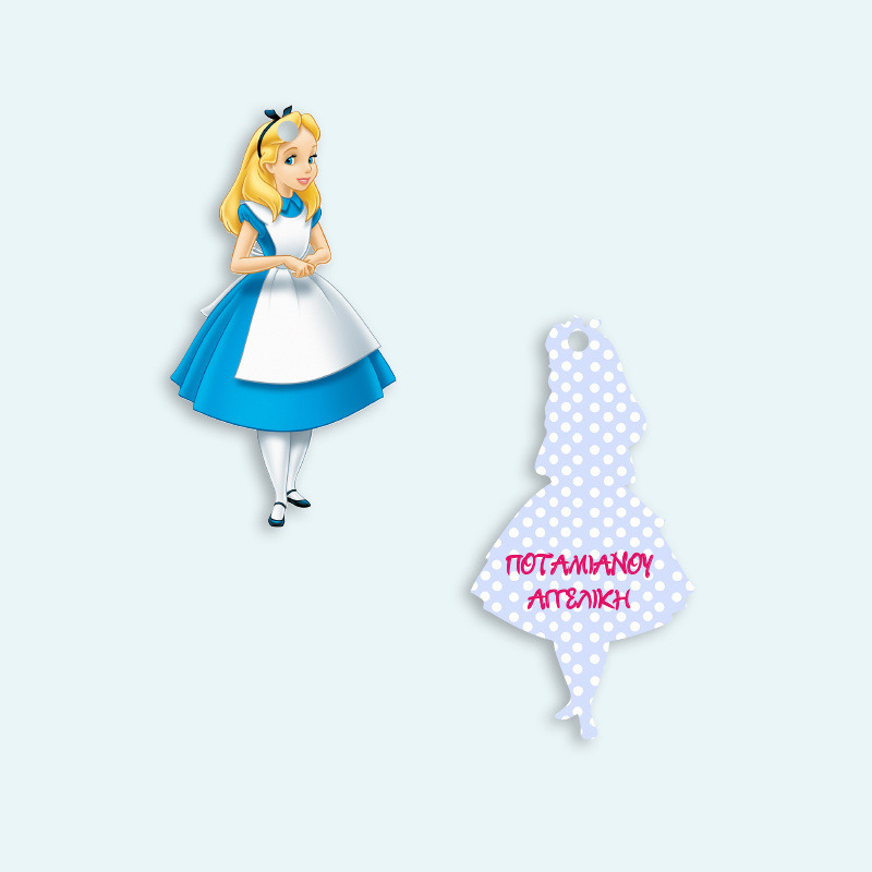 Ξύλινο ταμπελάκι Αλίκη στην Χώρα των Θαυμάτων με όνομα για την τσάντα