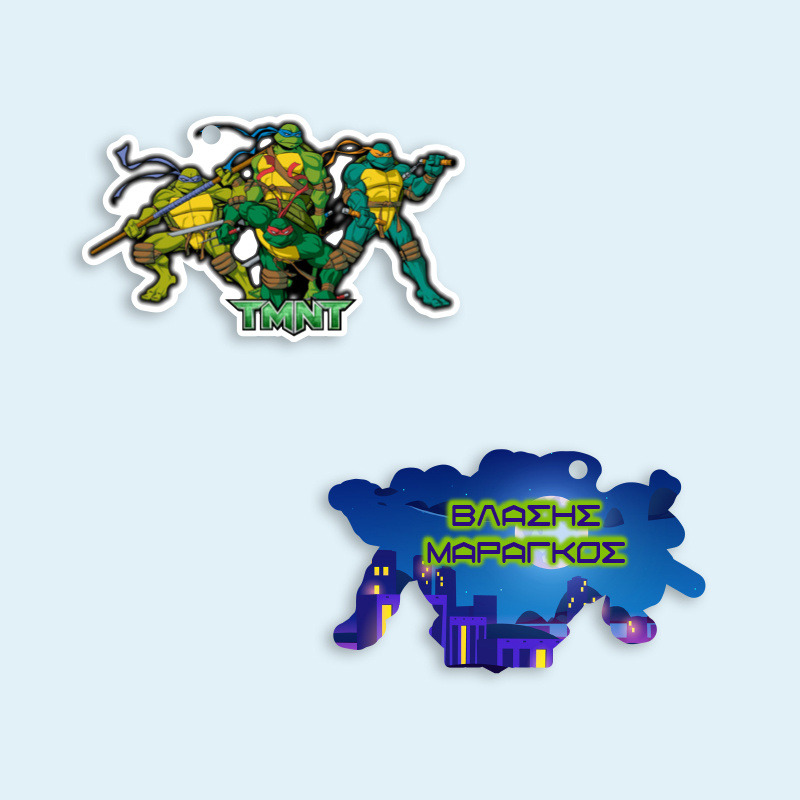 Ξύλινο ταμπελάκι Χελωνονιντζάκια με όνομα για την τσάντα
