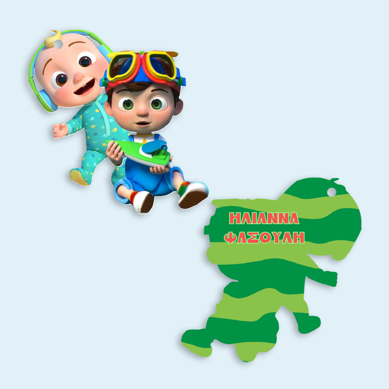Ξύλινο ταμπελάκι Cocomelon με όνομα για την τσάντα