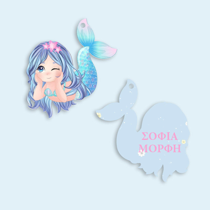 Ξύλινο ταμπελάκι Γοργόνα με όνομα για την τσάντα
