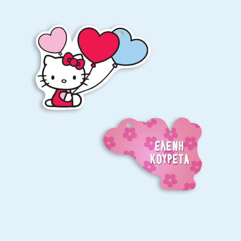 Ξύλινο ταμπελάκι Hello Kitty με όνομα για την τσάντα