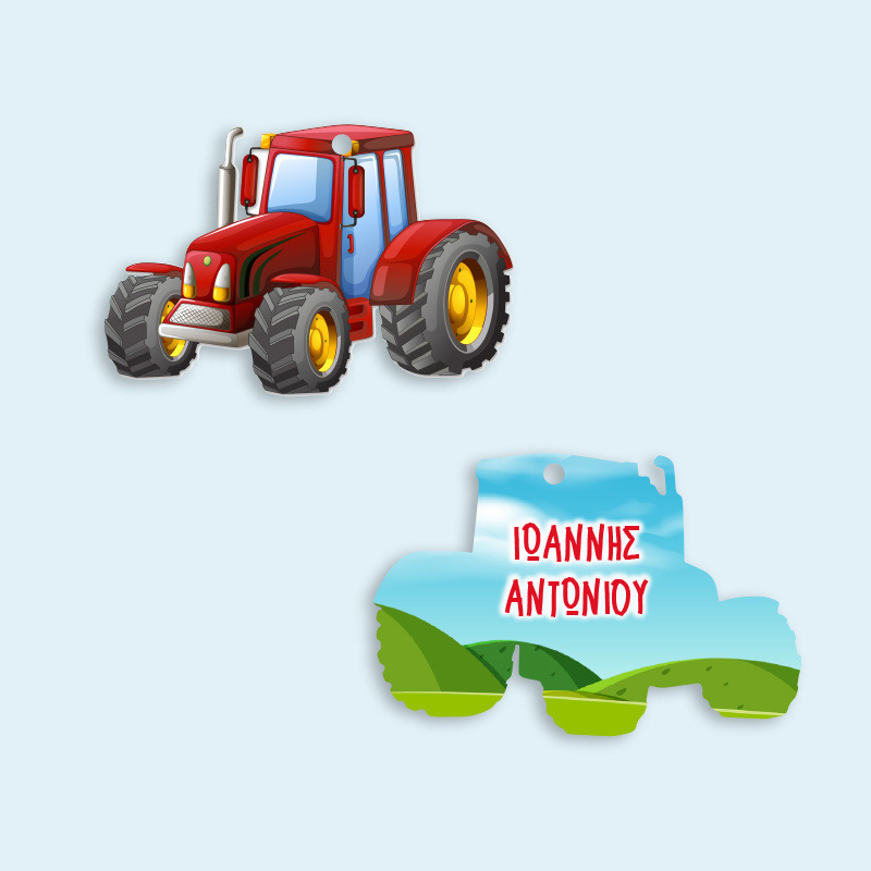 Ξύλινο ταμπελάκι Μικρός Τρακτεράκιας με όνομα για την τσάντα