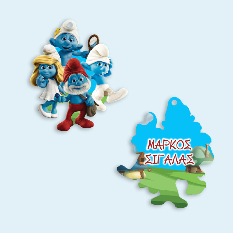 Ξύλινο ταμπελάκι Στρουμφάκια με όνομα για την τσάντα