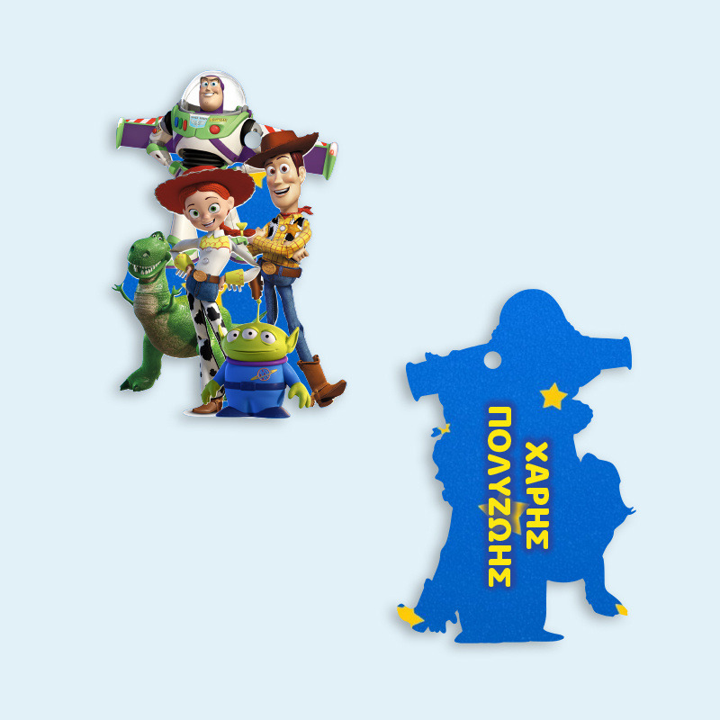 Ξύλινο ταμπελάκι Toy Story με όνομα για την τσάντα