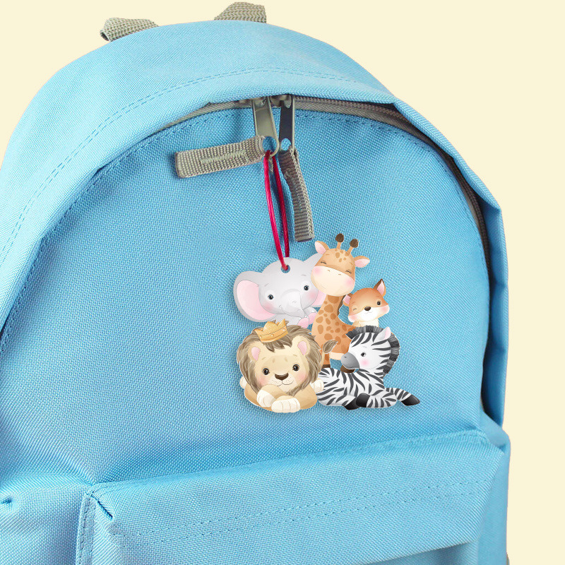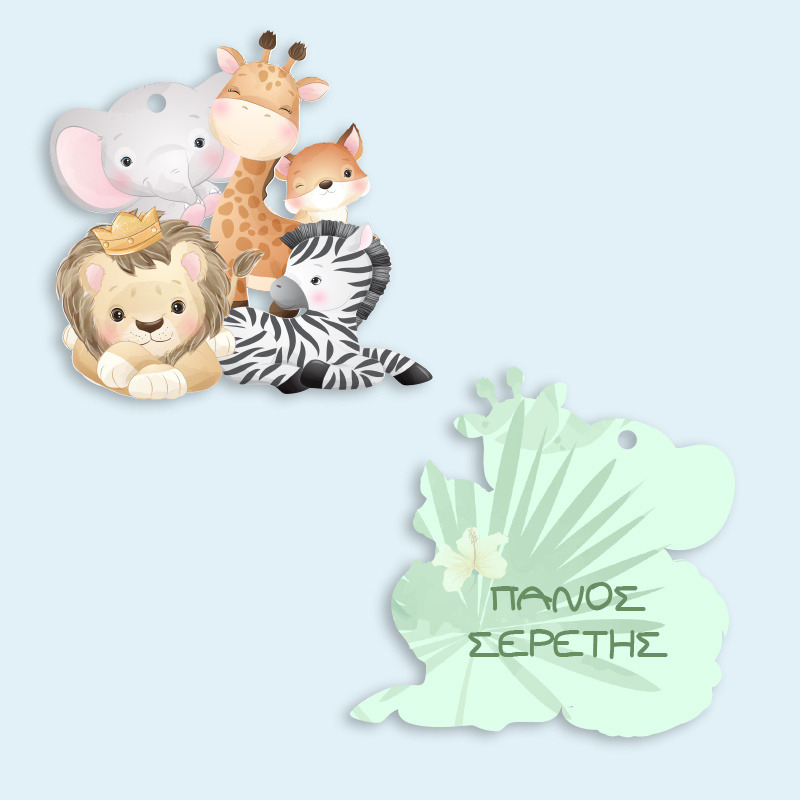 Ξύλινο ταμπελάκι Ζωάκια Ζούγκλας με όνομα για την τσάντα